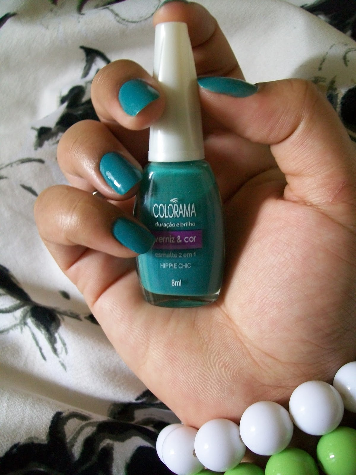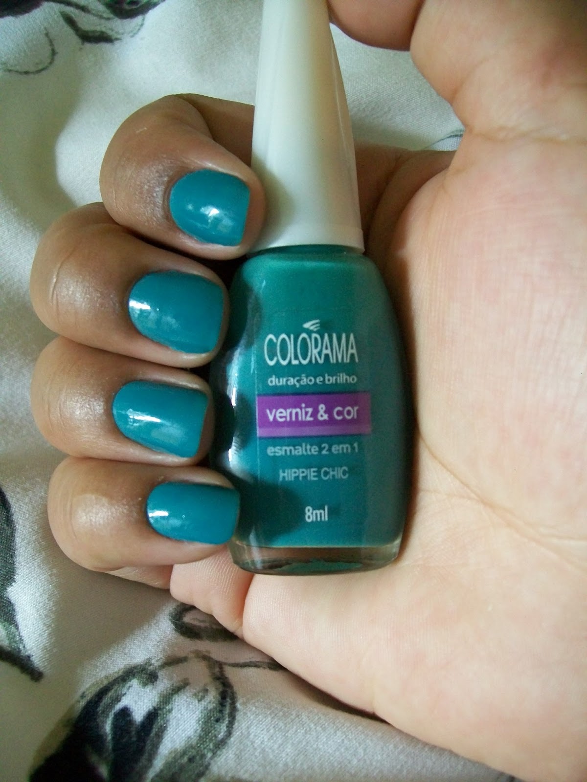 O esmalte dessa semana é o HIPPIE CHIC da Colorama. Ele é cremoso e eu achei bem pigmentado, a cor ficou muito boa só passei duas camadas, e por ser da coleção VERNIZ E COR o brilho ficou incrível.